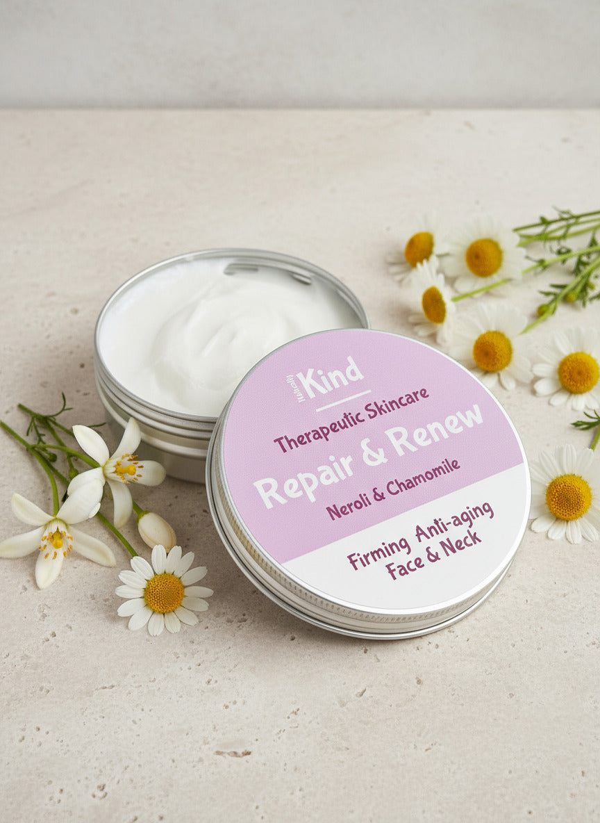 Repair & Renew isn’t just a moisturiser - it’s a deeply restorative ritual designed to calm, hydrate, and balance skin that’s prone to sensitivity, redness, or rosacea. Crafted from 100% natural ingredients and rich in plant-based butters and oils, this luxurious balm is gentle enough for reactive skin yet powerful enough to support complete skin renewal.